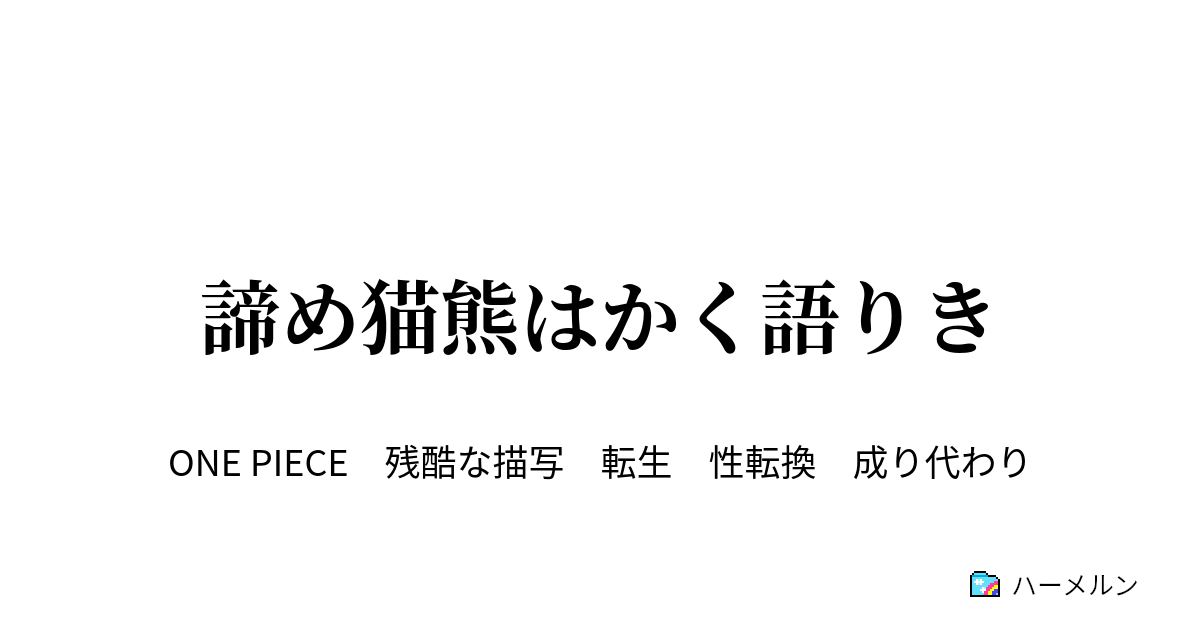 スパンダムに成り代わった人間が自分が終わるまで過ごす話、または、周囲の人間から見た、怠惰なパンダとのあれやこれについて。 CP9だとか、その周りにいる人間たち…