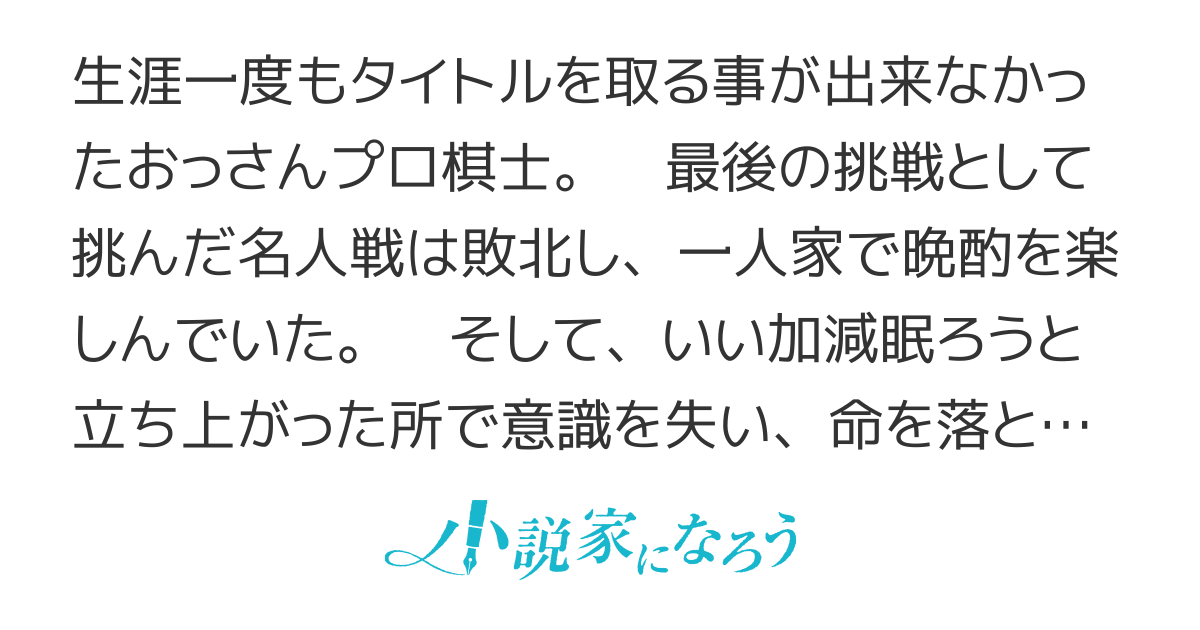 - タイトル戦を一度も取れなかった棋士が幼女に転生して名人を目指します。