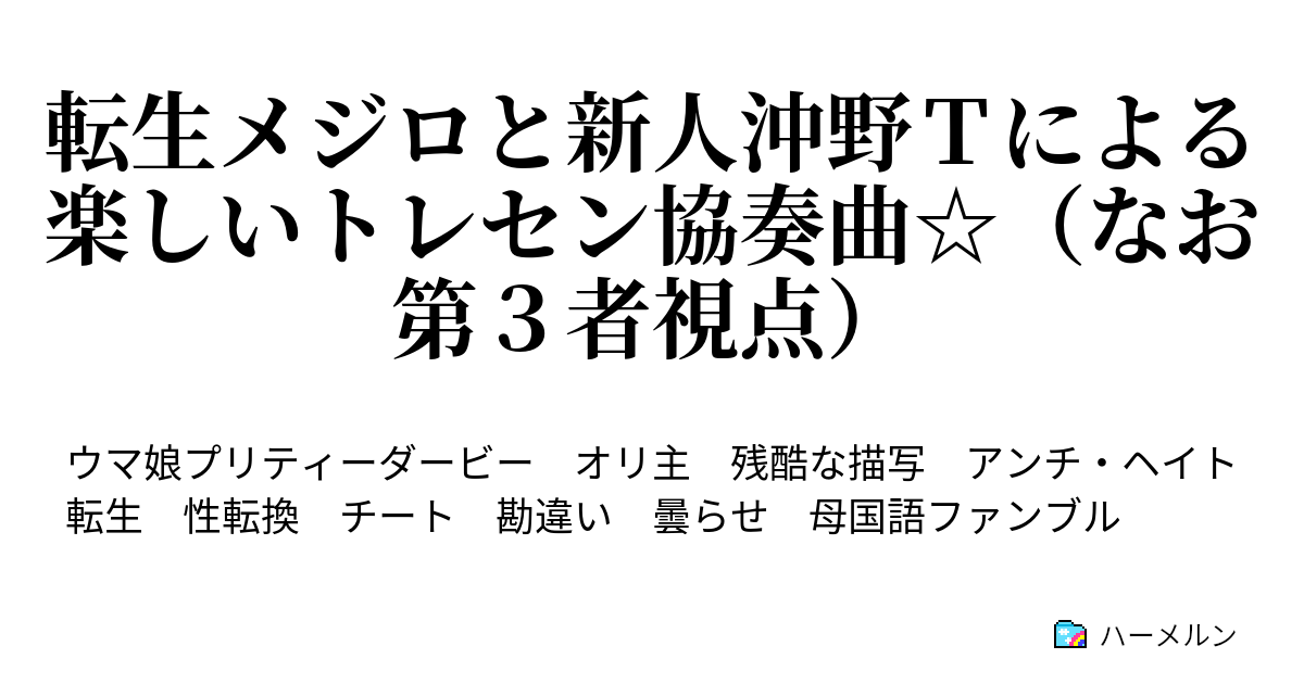 - ウマ娘にTS転生した主人公が、メジロ家を追放された狂人の母に促され、レースで他ウマ娘を蹂躙しようとします。