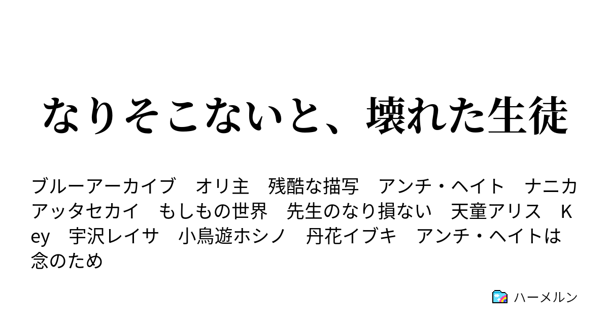 これは「ナニカアッタ」セカイで生き残ってしまった生徒たちが、先生のなり損ないと共に正史ブルーアーカイブの世界を生きる物語。