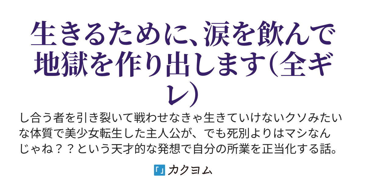 し合う者を引き裂いて戦わせなきゃ生きていけないクソみたいな体質で美少女転生した主人公が、でも死別よりはマシなんじゃね??という天才的な発想で自分の所業を正当化する話。なお、別に主人公関係なく世界はハードモードな模様。