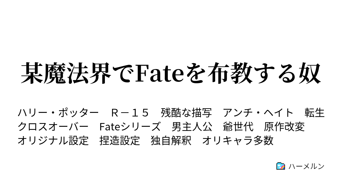 【簡易的なあらすじ】 ビンボー気味な主人公(♂)が金稼ぎのためにFateシリーズを小説という形で執筆する話。 なお、その小説は後々魔法界に多大なる影響を与えると…