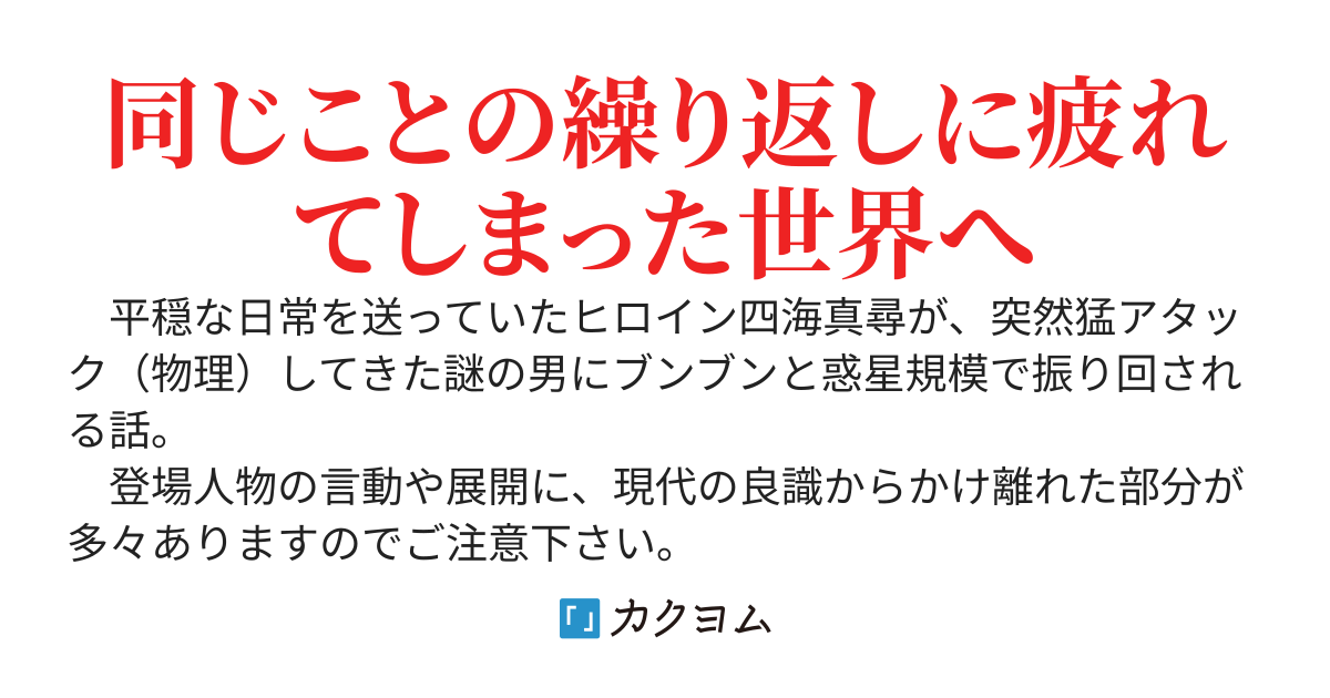 平穏な日常を送っていたヒロイン四海真尋が、突然猛アタック(物理)してきた謎の男にブンブンと惑星規模で振り回される話。