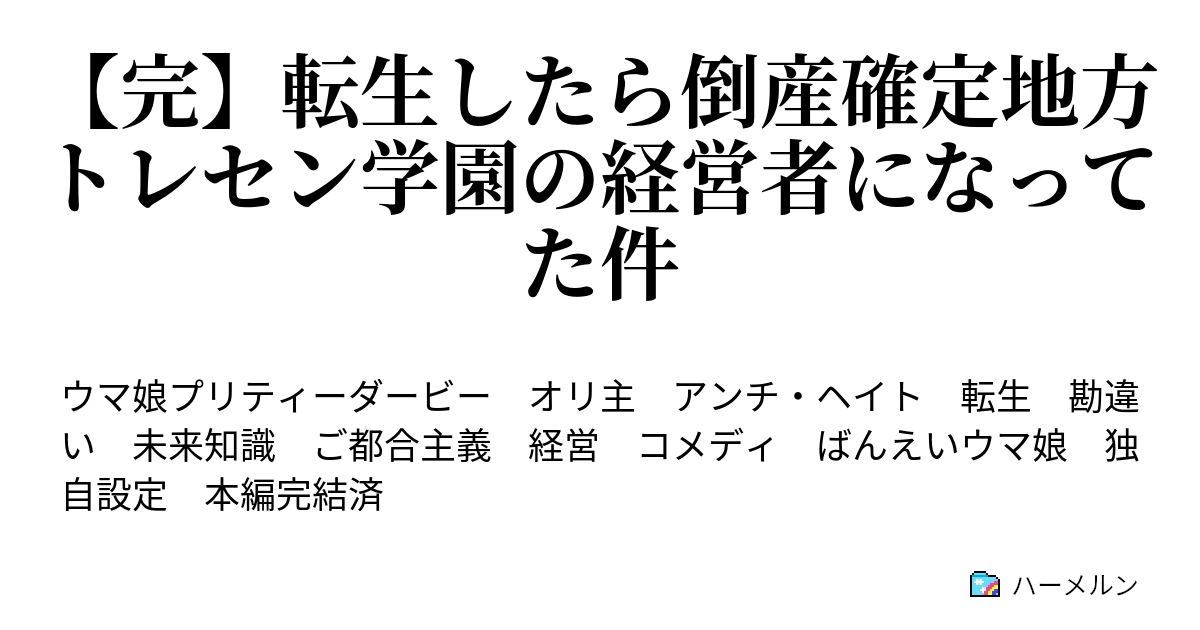 【完】転生したら倒産確定地方トレセン学園の経営者になってた件 - ハーメルン