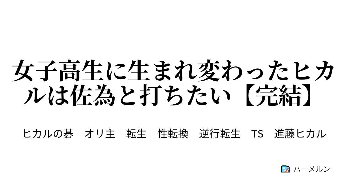 ヒカルの碁の二次創作は、ヒカルが人生をやり直す、というものが定番なんですが、この小説は定番から少し外してTSさせました。この一捻りがかなり面白いです。